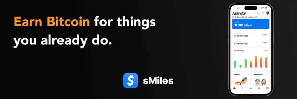 You can walk 10,000+ steps in a day, and sMiles rewards you with 21 sats. If you shop, you can earn up to 35% back in Bitcoin of the dollars you spend at vendors like NordVPN, Ebay, Walmart, and more.