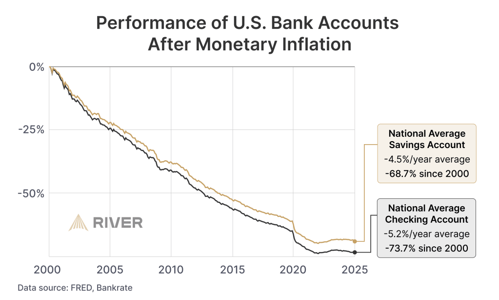 Every time the Federal Reserve engages in monetary stimulus, it makes our system more fragile. The cracks are starting to show in people’s savings, where the average bank account has been eroded by nearly 70% since 2000.