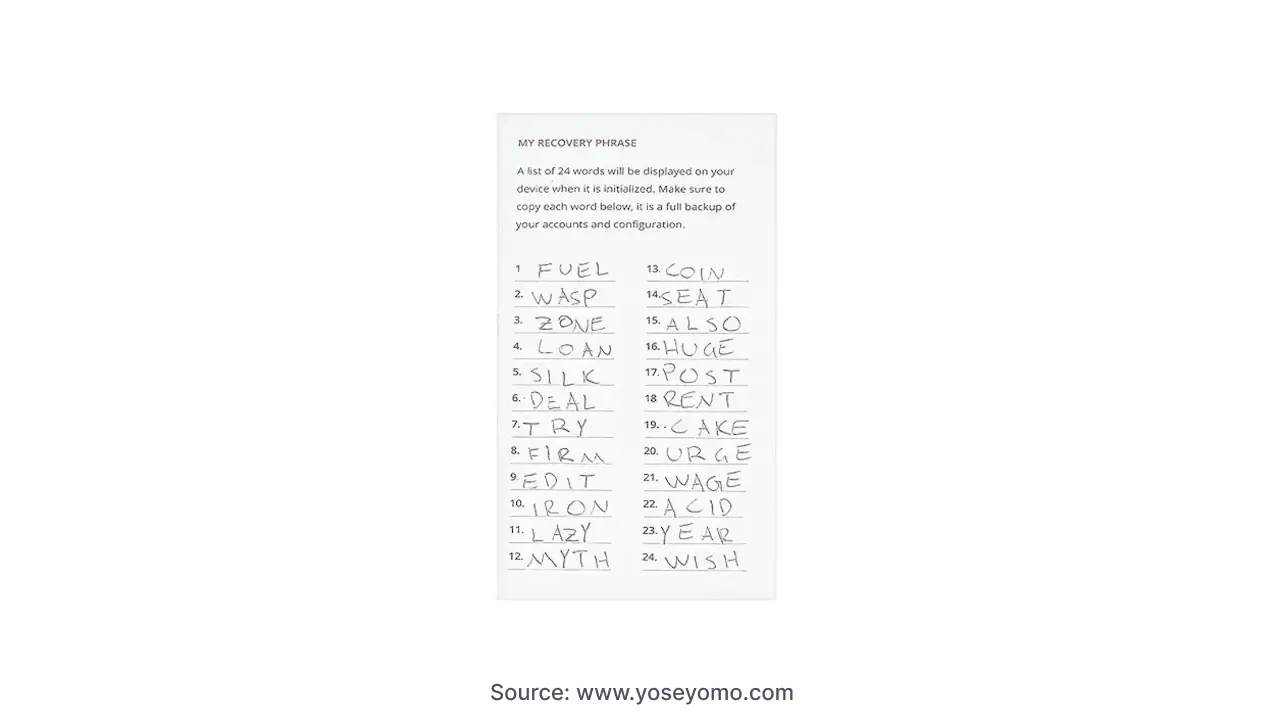 An estimated 20% of the Bitcoin supply is considered inaccessible or “lost,” often due to individuals losing access to their wallets. There have been too many horror stories of people losing generational wealth because of human error. The solution is the seed phrase. A seed phrase is a sequence of 12 to 24 words allowing users to recover their bitcoin.