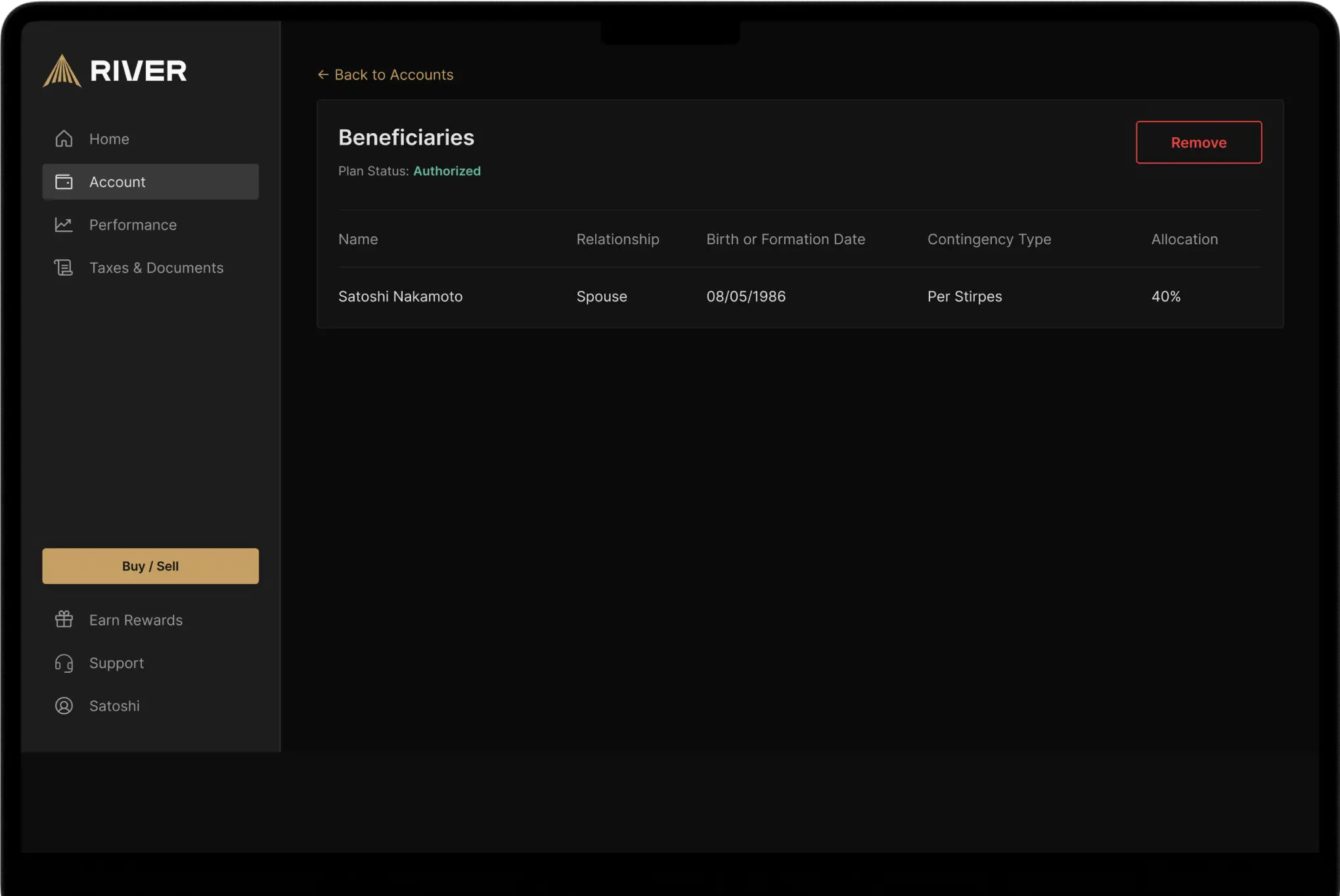 Have a lifetime of peace of mind knowing your Bitcoin passes directly to your loved ones with River's beneficiary plans.