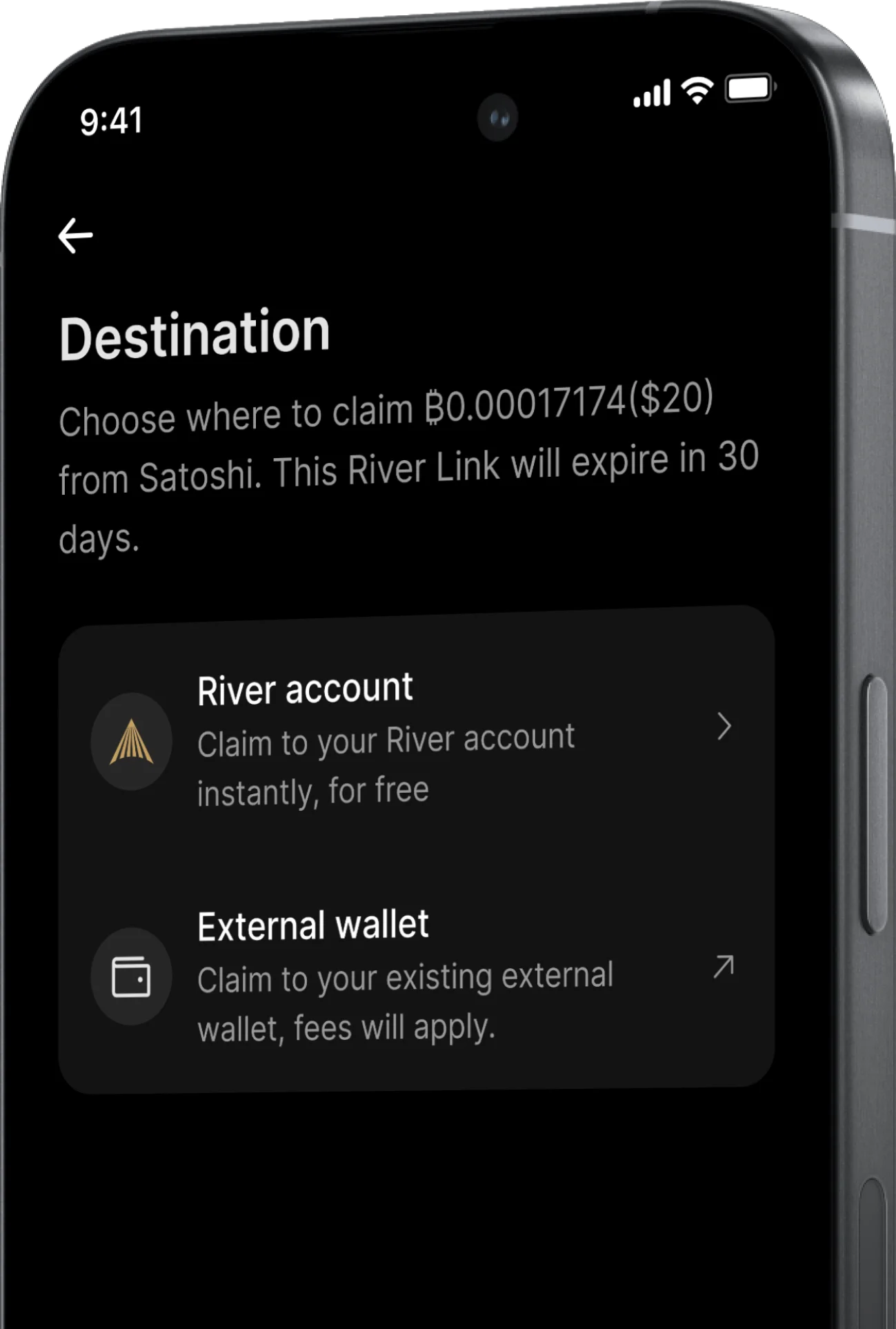 Recipients can claim their River Link using any Bitcoin wallet or a River account.