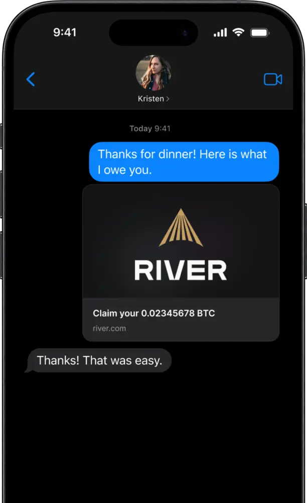 Send or gift Bitcoin with River Link. Friends and family can claim to a River account or any Bitcoin wallet.